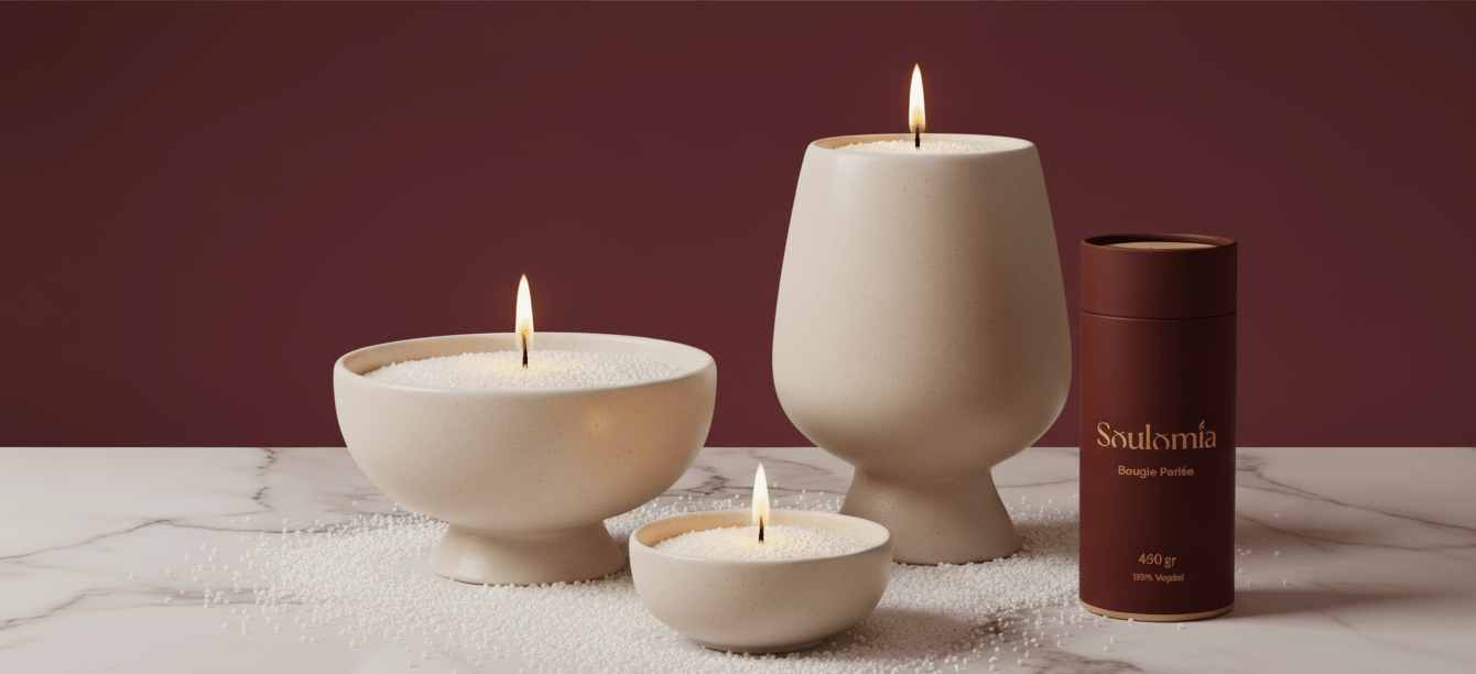 Nos Bougies Perlées sont confectionnées à partir de cire végétale en soja