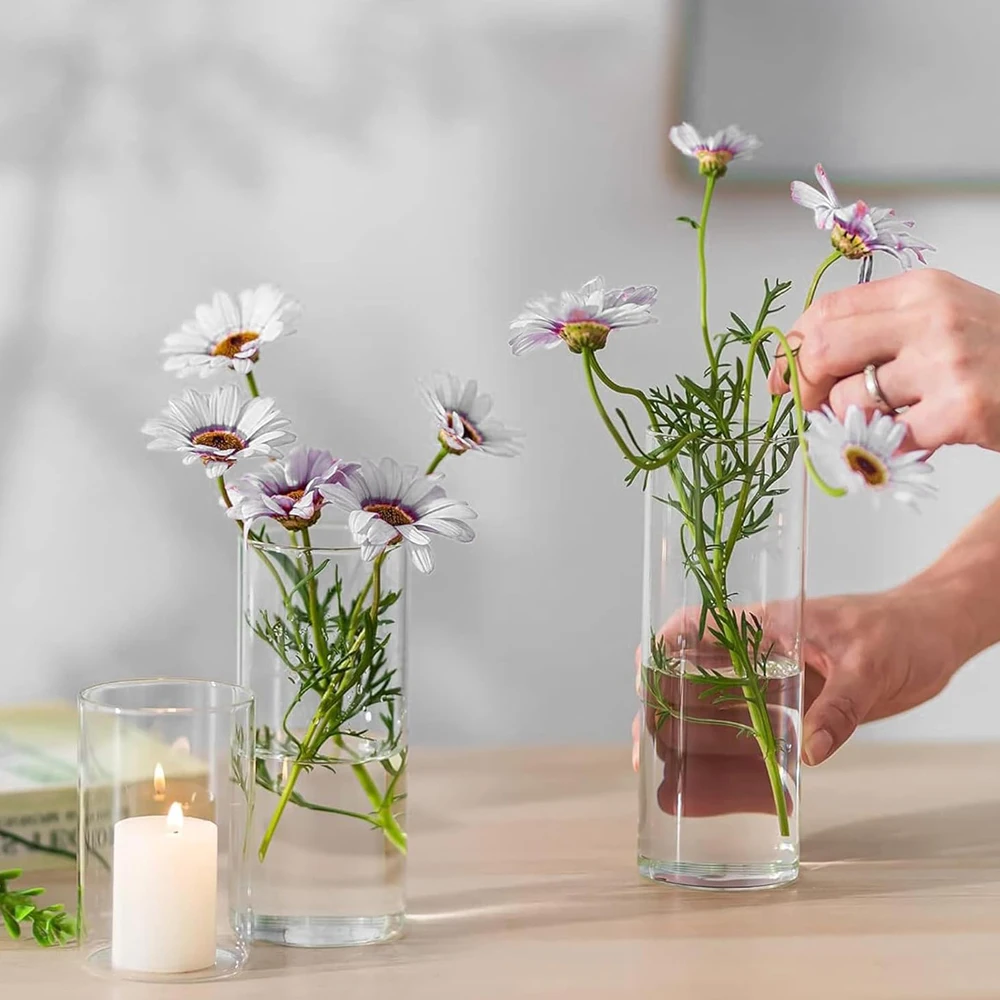 Elegant & Sturdy -- Made of crystal clear glass, Our clear glass cylinder vases set are sturdy, simple, elegant and modern. When you want the arrangement to stand out more than the vase, then go for these. They are a perfect accent to a simple or complex arrangement.